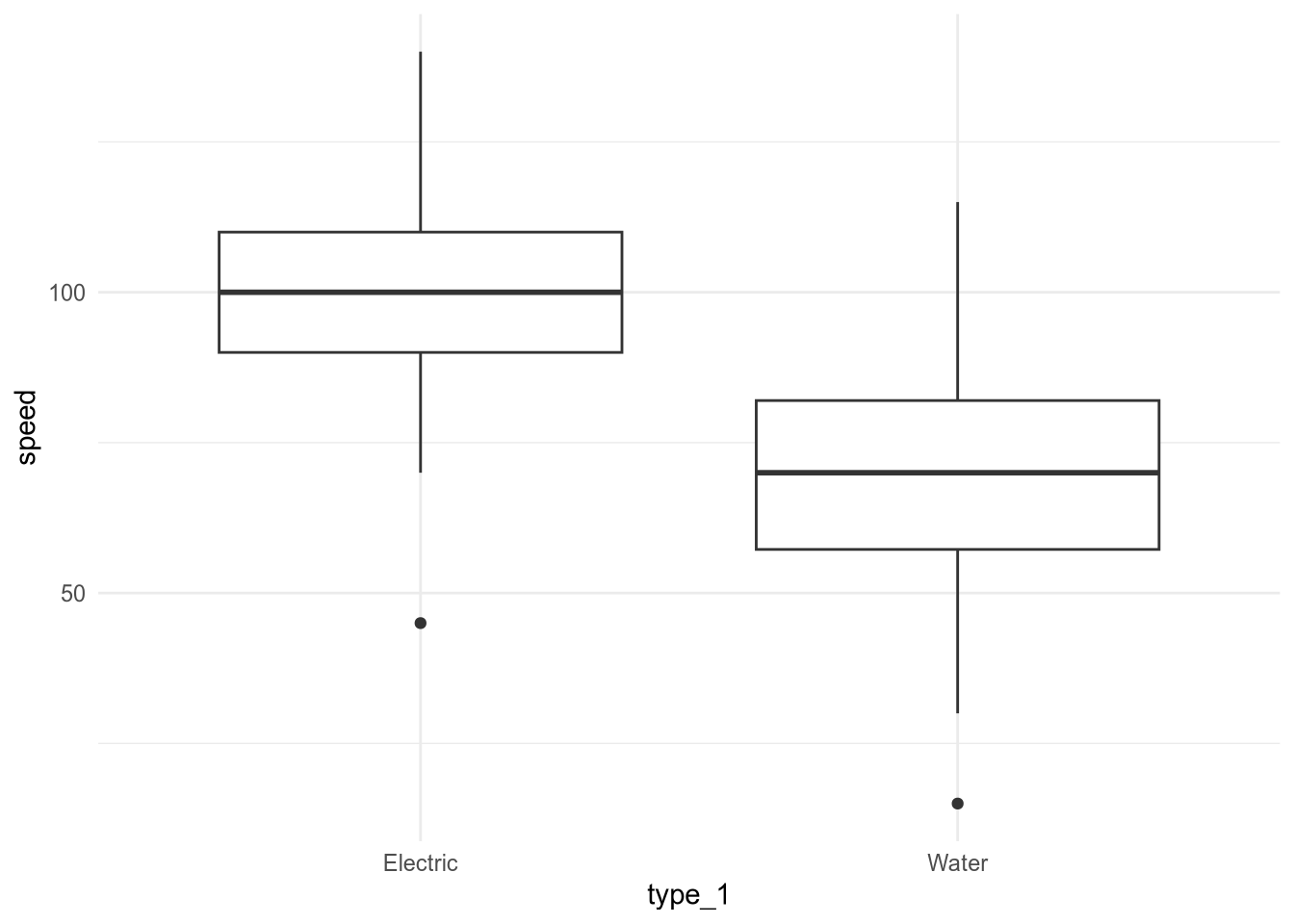 geom_boxplot(aes(x = type_1, y = speed)) +