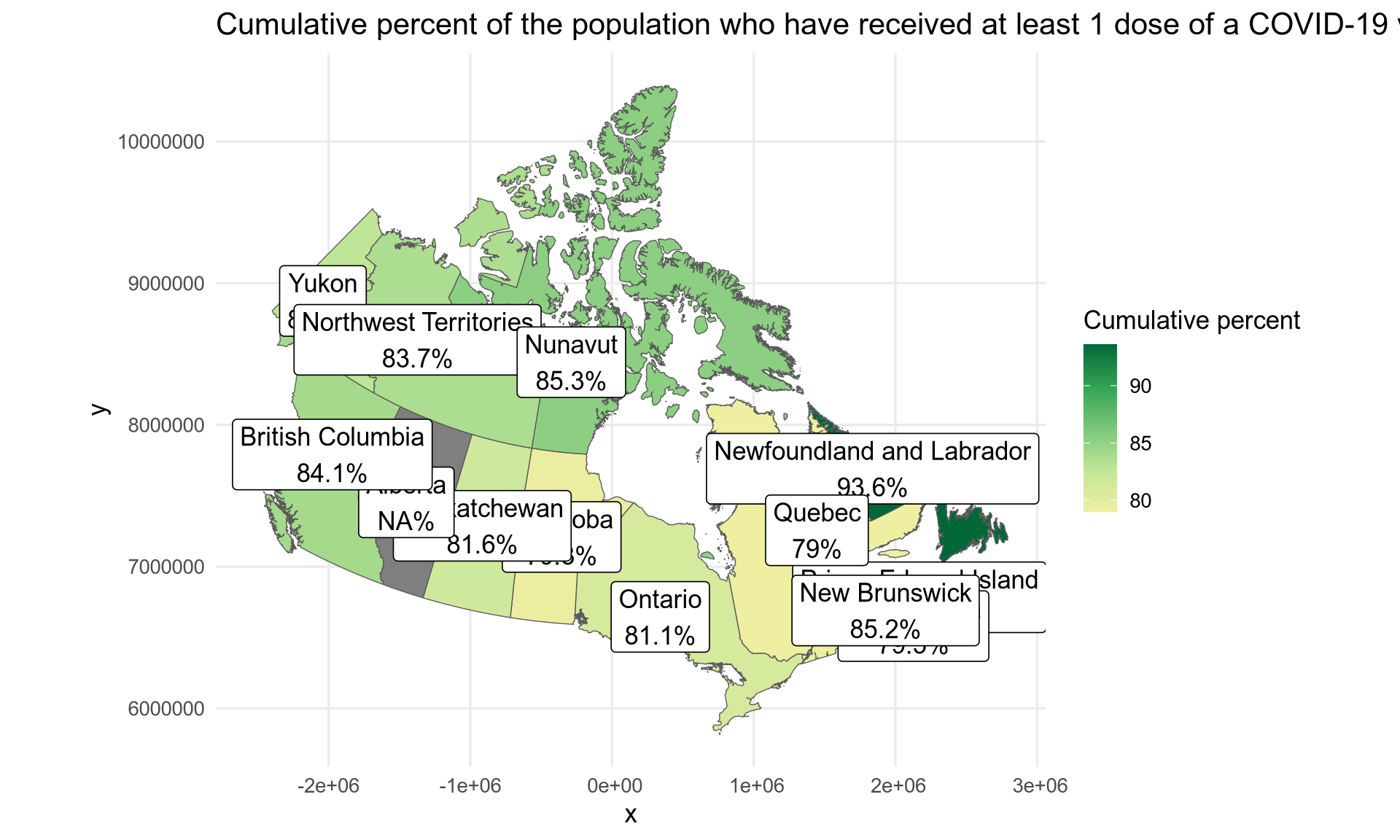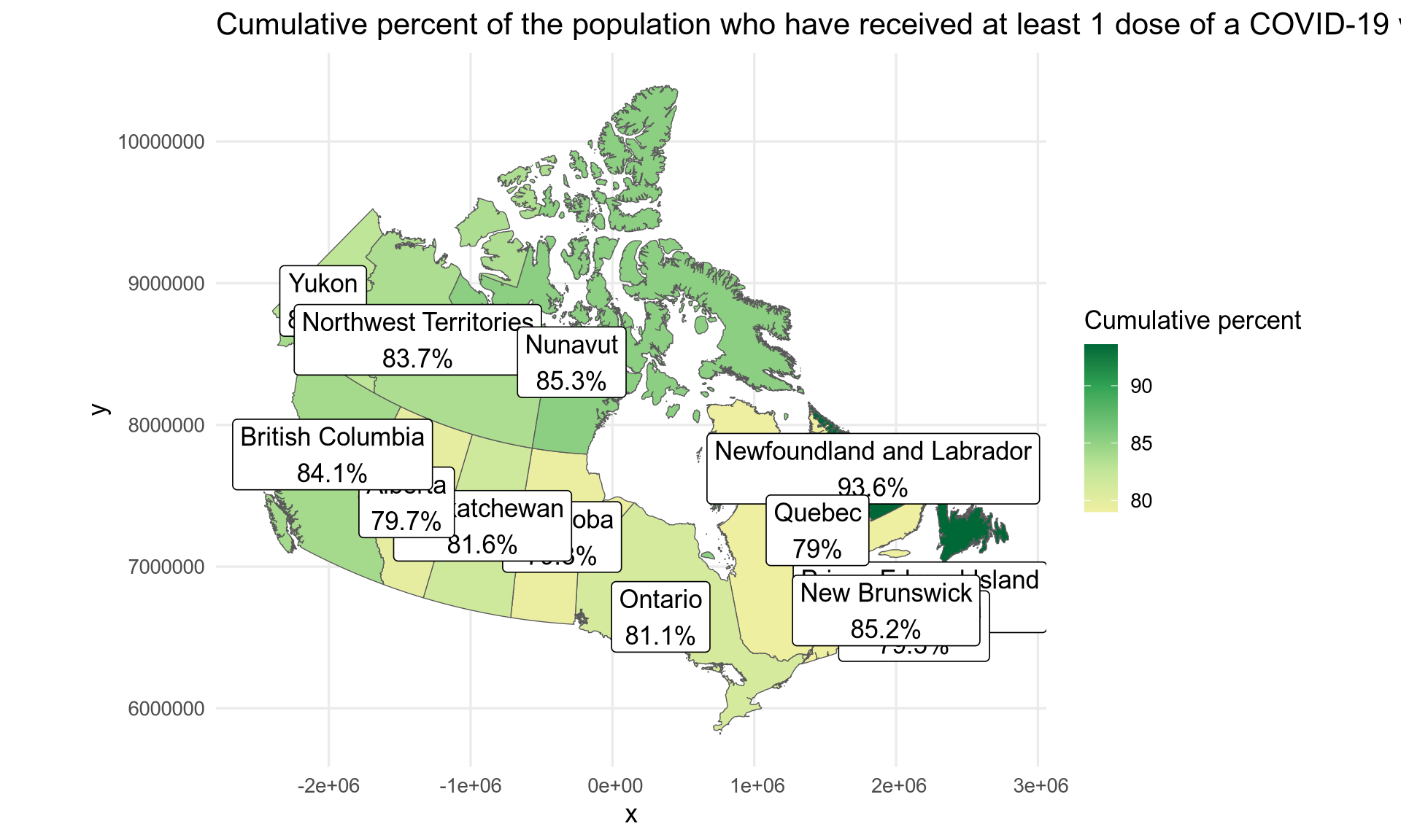 labs(title = "Cumulative percent of the population who have received at least 1 dose of a COVID-19 vaccine") +