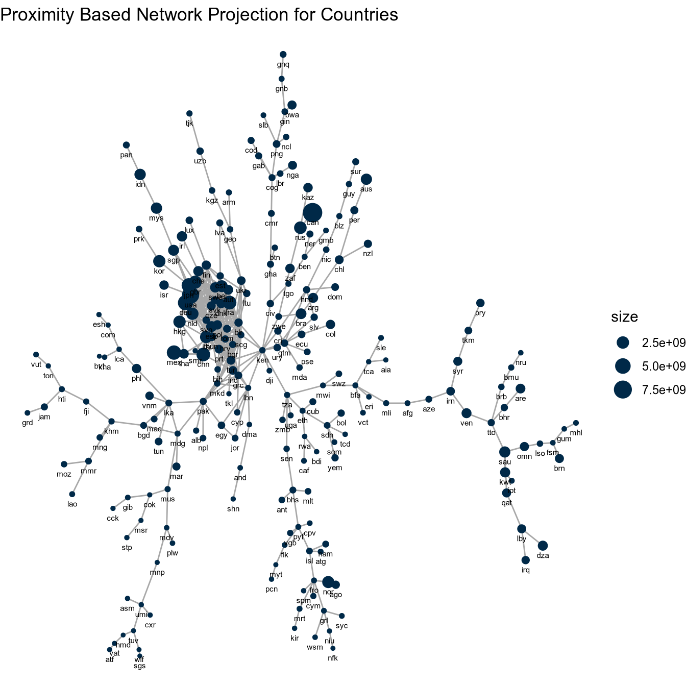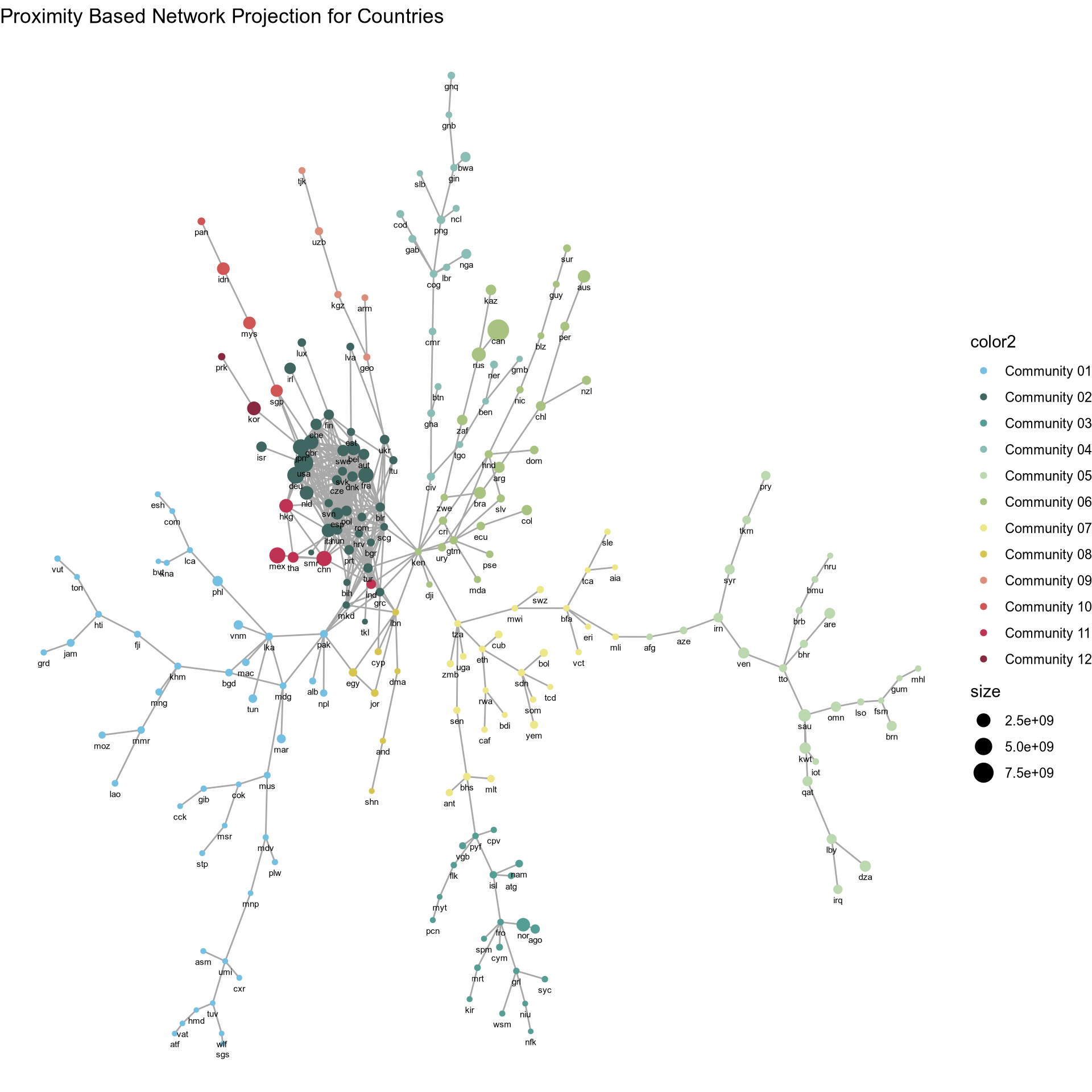 This example is inspired after the visualizations from Hausmann et al. (2014) with some ggplot additions. The original vignette was largely improved from what I learned in Network Analysis taught at ICPSR 2023 by Dr. Sarah Shugars.